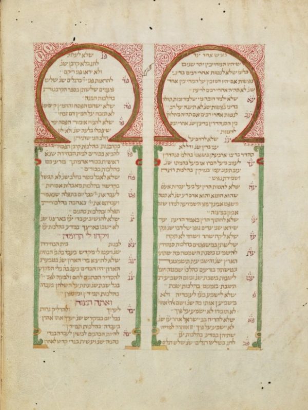 The Haggadah (Hebrew, meaning “telling”) is a guide for the Passover Seder, which remembers the Jewish exodus out of Egypt.