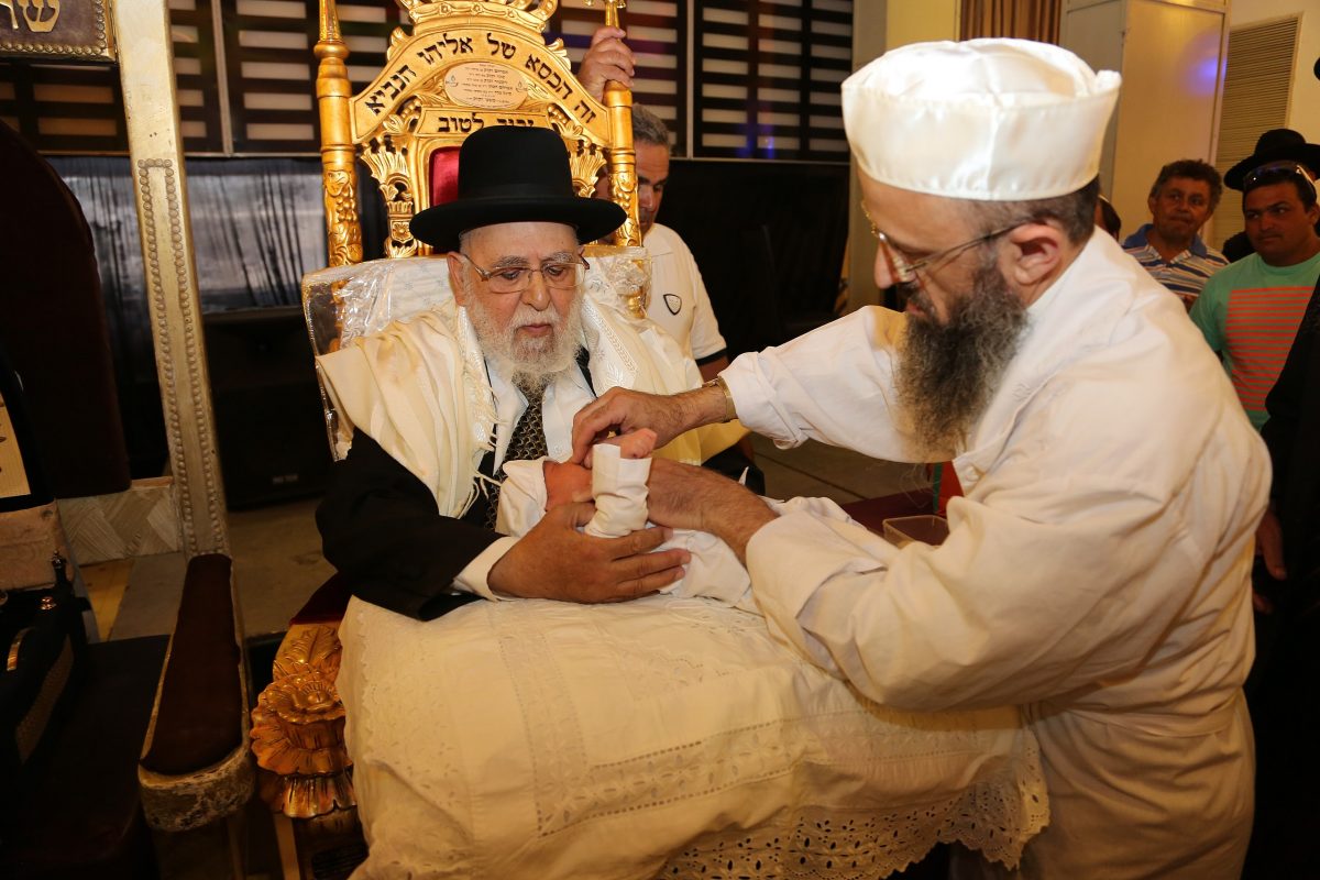 הרב ביחד עם המוהל בנו ר' שמעון by Udibh22 on Wikimedia Commons, CC-BY-SA 4.0.