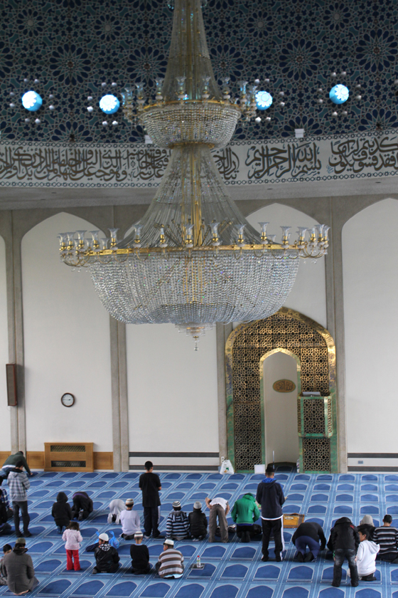The mihrab is a focal point of the mosque. They are often beautifully decorated with designs or quotations from the Qur’an. To the right of the mihrab is the minbar. The minbar is a platform where the imam stands to address the congregation.