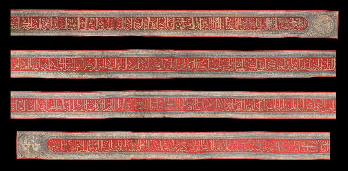 Belt from the Prophet's Mosque showing the 99 names of God, early 19th century, Khalili Collection of Hajj and the Arts of Pilgrimage TXT 365