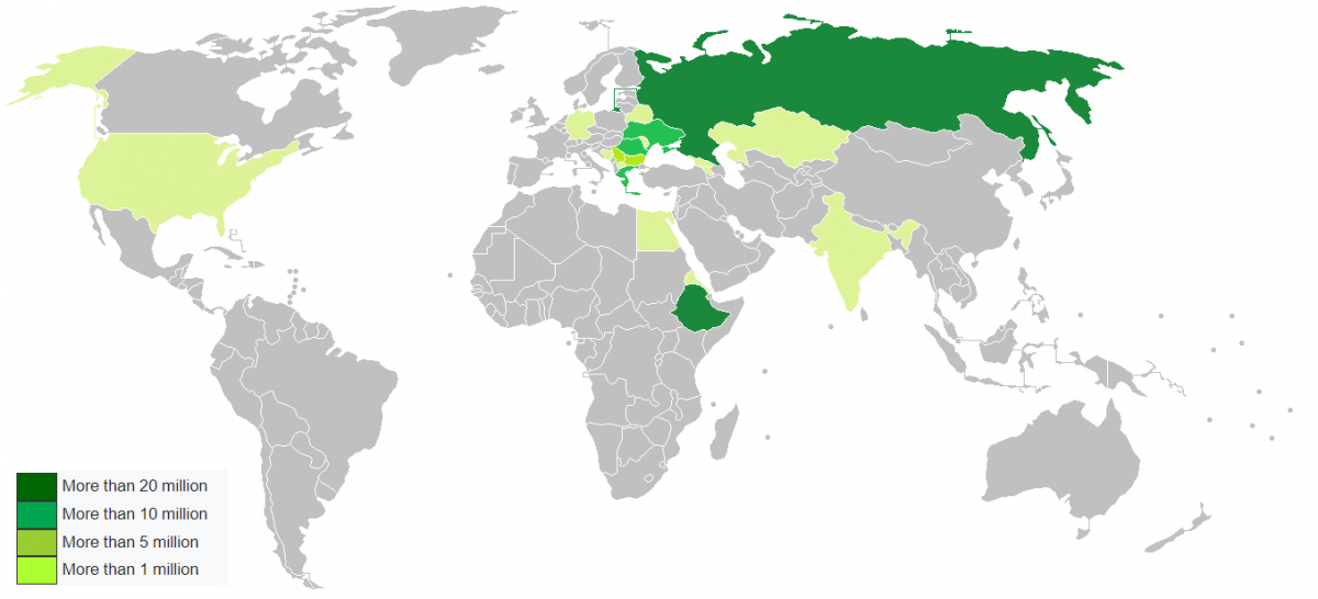 Orthodox Christians by country by Ernio48 using data from Pew Forum, via Wikimedia Commons, CC0.